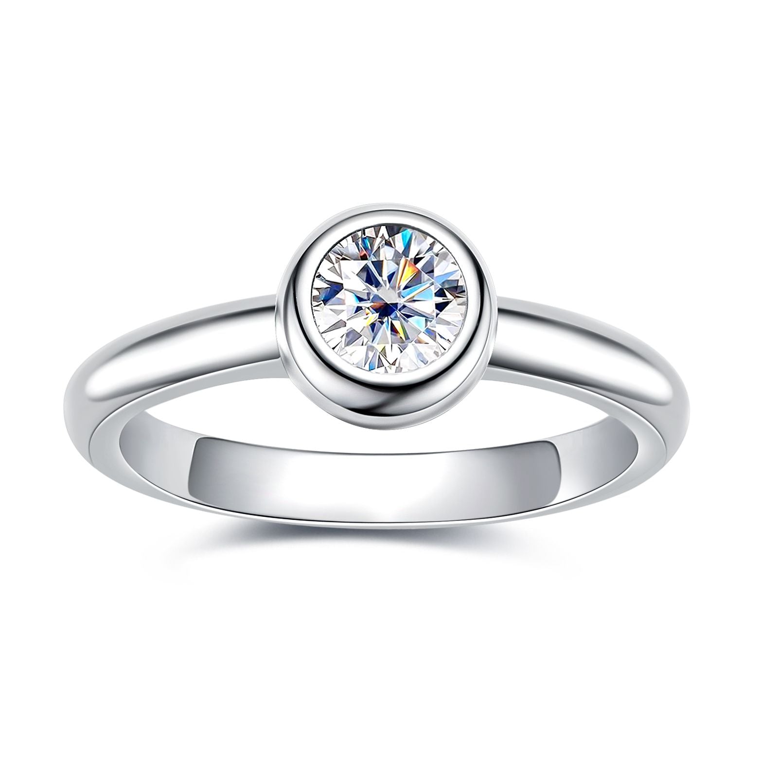 0.5 Carat Halo Moissanite Ring, Round Cut D Color VVS1 Clarity in 925 Sterling Silver, with Certificate & Luxury Gift Box