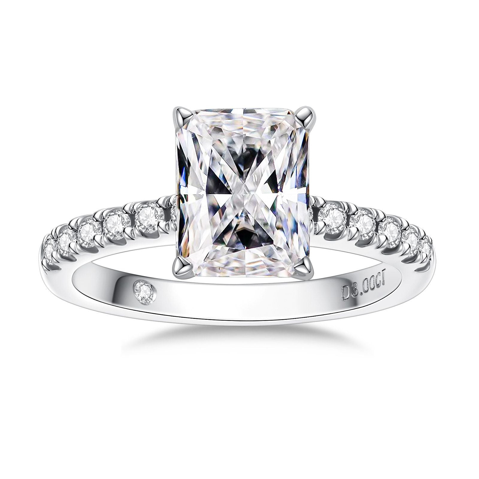 3 Carat Emerald Cut Moissanite Engagement Ring, D Color VVS1 in 18K Gold Plated 925 Silver, GRA Certified Anniversary Gift with Luxury Box