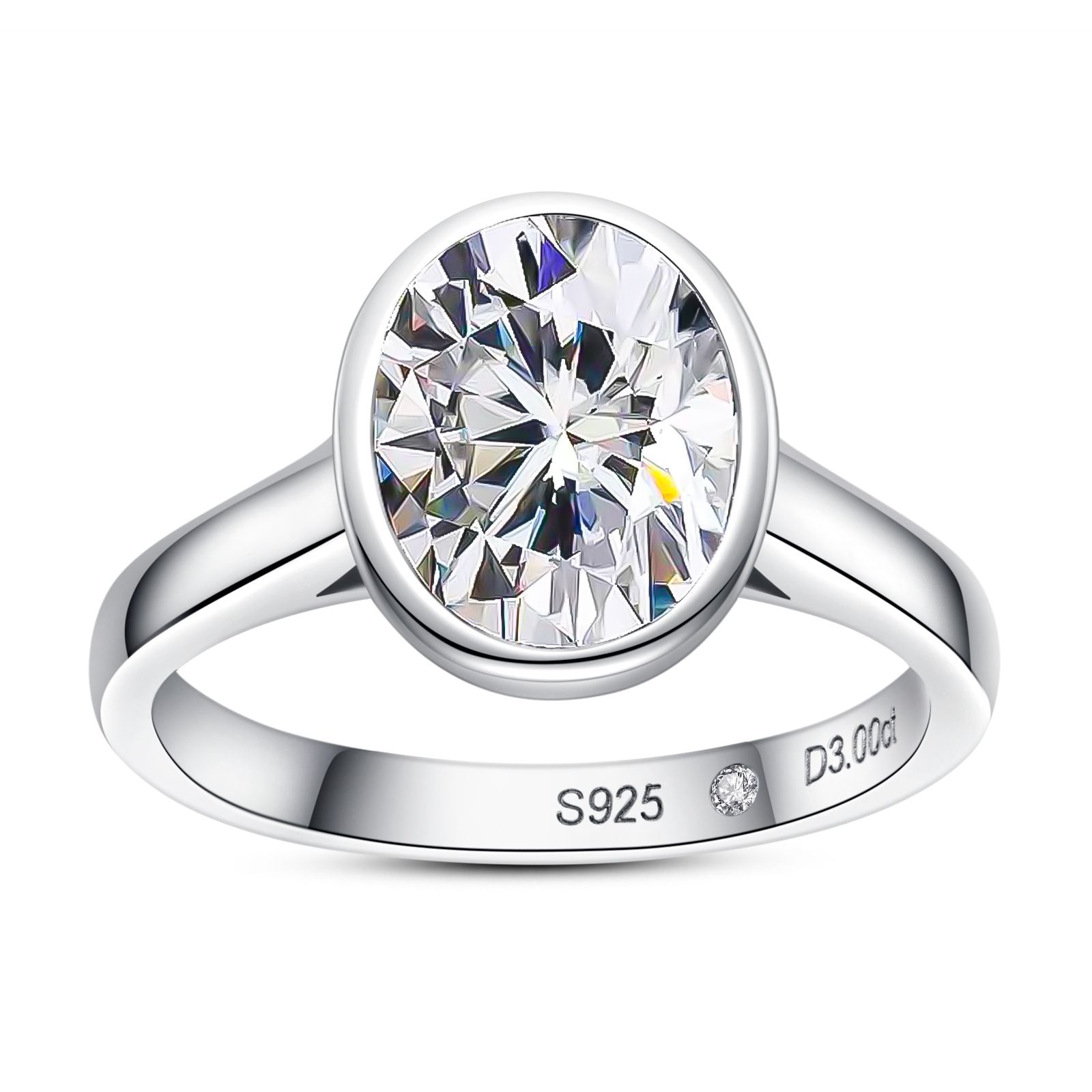 3 Carat Moissanite Bezel Set Engagement Ring, Oval Cut D Color VVS1 in S925 Sterling Silver, Certified Wedding Ring with Gift Packagin