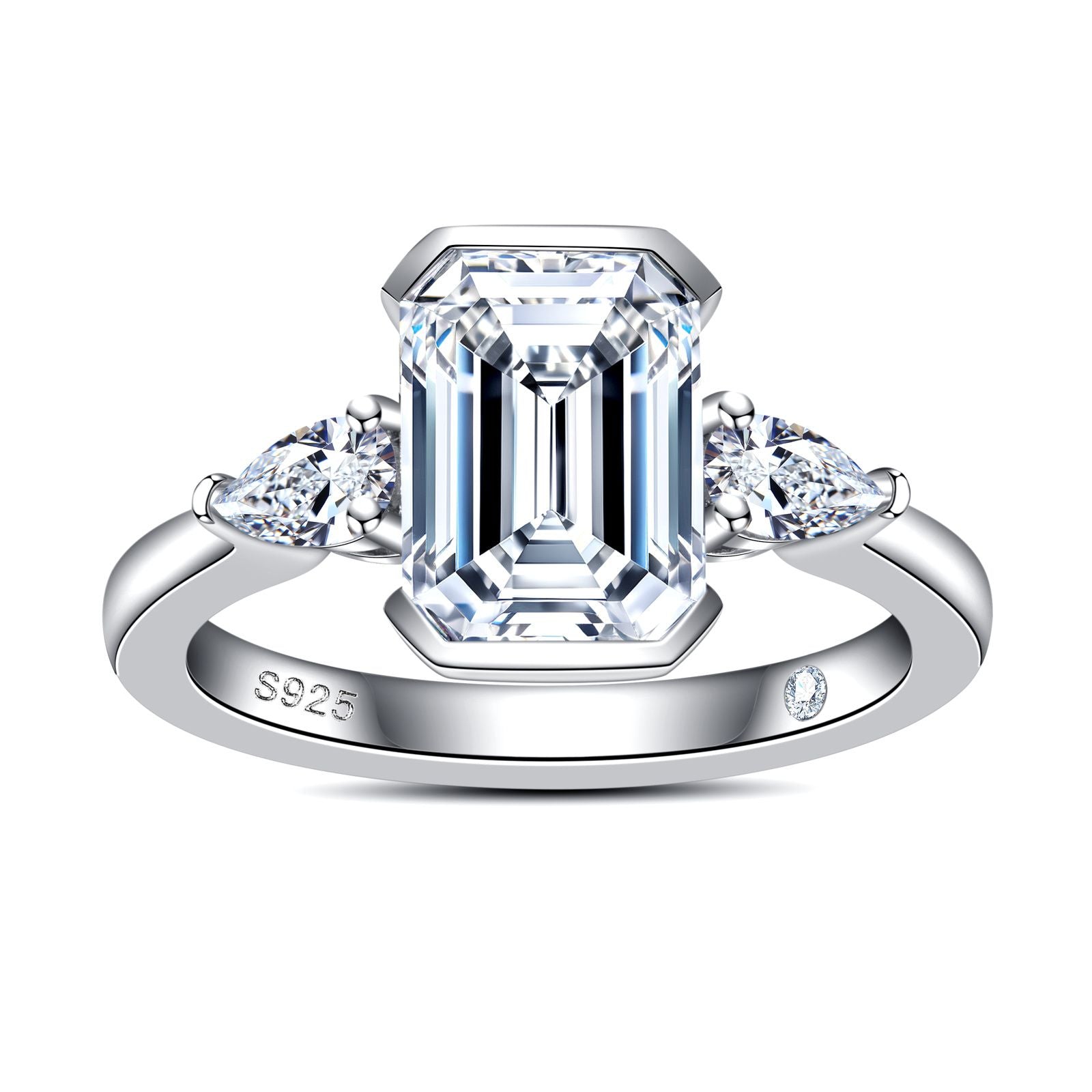3 Ct Center Moissanite Ring,Engagement Rings 3.2-4 CTTW Total | Radiant/Emerald/Pear Cut & Certified